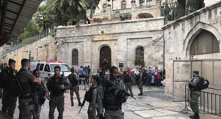 الإسرائيلية في مدينة القدس، واعتراض الشرطة الإسرائيلية طريق المسيحيين الفلسطينيين الراغبين في الوصول إلى كنيسة القيامة.